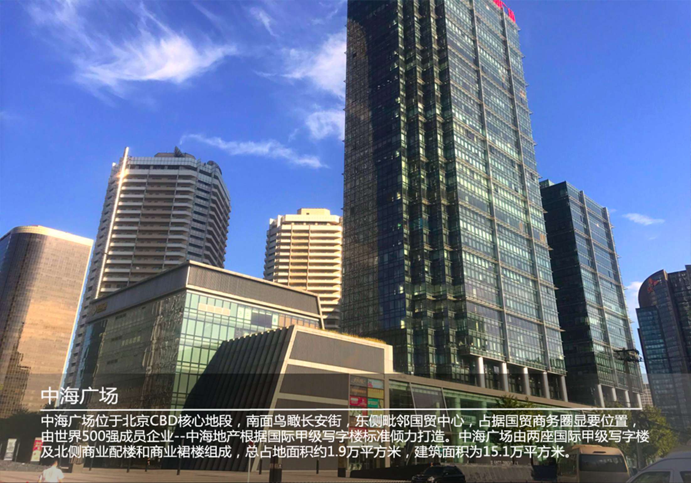 中海廣場(chǎng)位于北京CBD核心地段,南面鳥(niǎo)瞰長(zhǎng)安街,東側(cè)毗鄰國(guó)貿(mào)中心,占據(jù)國(guó)貿(mào)商務(wù)圈顯要位置,由世界500強(qiáng)成員企業(yè)中海地產(chǎn)根據(jù)國(guó)際甲級(jí)寫(xiě)字樓標(biāo)準(zhǔn)傾力打造。中海廣場(chǎng)由兩座國(guó)際甲級(jí)寫(xiě)字樓及北側(cè)商業(yè)配樓和商業(yè)裙樓組成,總占地面積約1.9萬(wàn)平方米,建筑面積為151,000平米。 交通情況十分發(fā)達(dá):城市主干線長(zhǎng)安街、東三環(huán),東西干道光華路通連四方; 地鐵1、10號(hào)線、數(shù)十條公交線路均匯聚于此;項(xiàng)目西側(cè)規(guī)劃中的CBD中軸路及北側(cè)、 南側(cè)、東側(cè)市政規(guī)劃路將使本項(xiàng)目交通更為便捷。