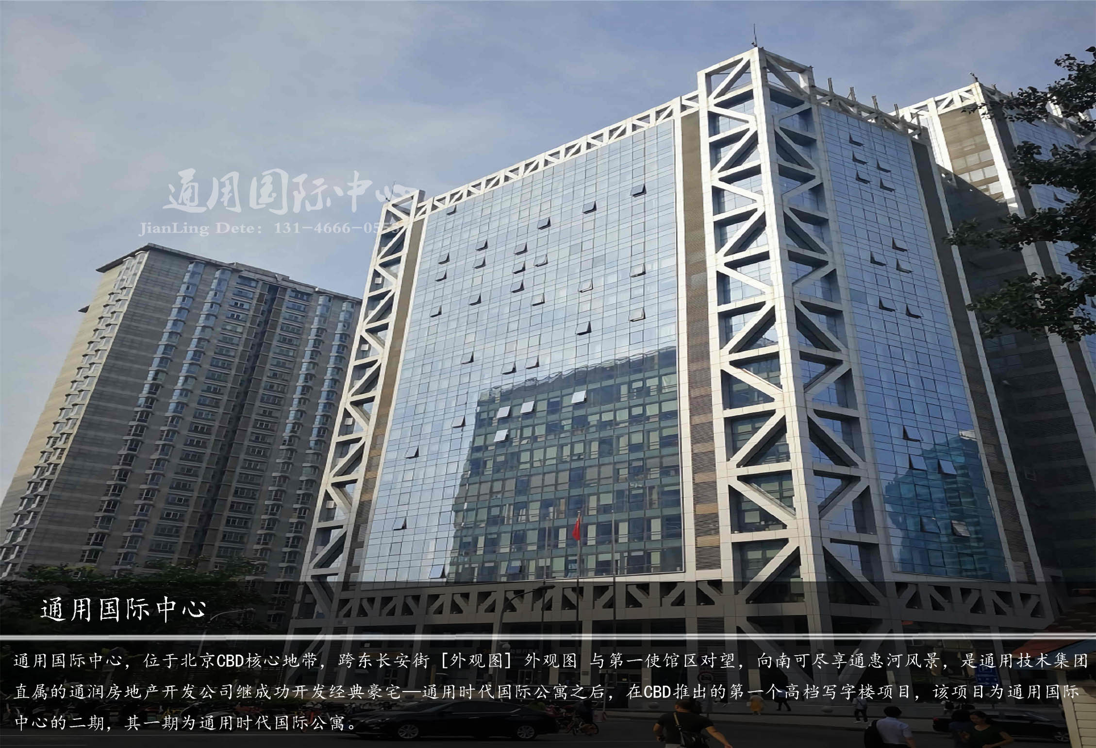 通用國(guó)際中心,位于建國(guó)門(mén)外大街永安東里甲3號(hào),北京CBD核心地帶,跨東長(zhǎng)安街與第一使館區(qū)對(duì)望,向南可盡享通惠河風(fēng)景,是通用技術(shù)集團(tuán)直屬的通潤(rùn)房地產(chǎn)開(kāi)發(fā)公司繼成功開(kāi)發(fā)經(jīng)典豪宅——通用時(shí)代國(guó)際公寓之后,在CBD推出的第一個(gè)高檔寫(xiě)字樓項(xiàng)目,該項(xiàng)目為通用國(guó)際中心的二期,其一期為通用時(shí)代國(guó)際公寓。北京秉承打造百年建筑的企業(yè)理念,通用國(guó)際中心全面采用國(guó)際化標(biāo)準(zhǔn),使用國(guó)際上先進(jìn)的全鋼結(jié)構(gòu),是繼國(guó)貿(mào)、京廣中心之后,CBD第三座全鋼結(jié)構(gòu)國(guó)際寫(xiě)字樓。