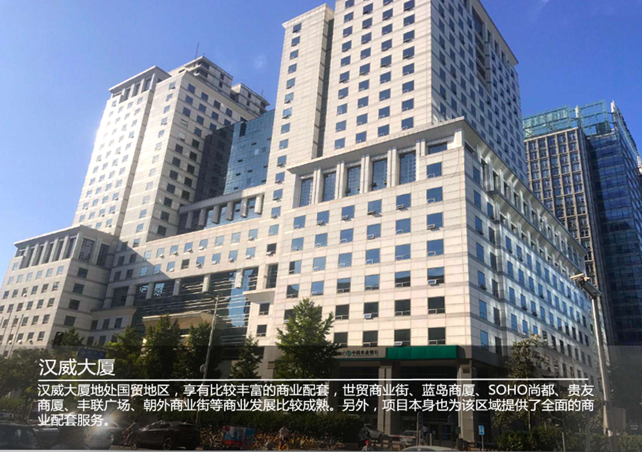 漢威大廈是由北京漢威廣場物業(yè)開發(fā)有限公司、香港AGK公司共同開發(fā)的一座綜合型辦公寫字樓,大廈總建筑面積14,800平方米,標寫字樓出租開間面積為894平方米,整層面積3000平方米 ,共28層,凈層高2.8米。大廈提供多種戶型的辦公間可供選擇,漢威大廈本身具備極高的品質,能夠滿足不同客戶的實際需求,商務設施齊全。
